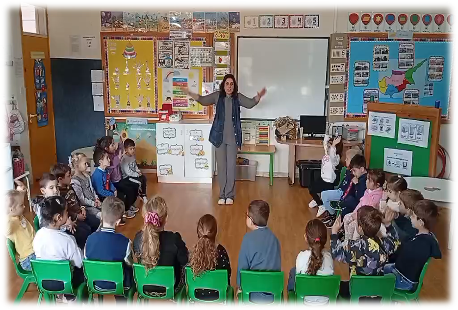 Στην προσχολική εκπαίδευση η ξένη γλώσσα δεν εισάγεται ως ξεχωριστό μάθημα, αλλά γίνεται μέρος της καθημερινής ζωής των παιδιών στο σχολείο.